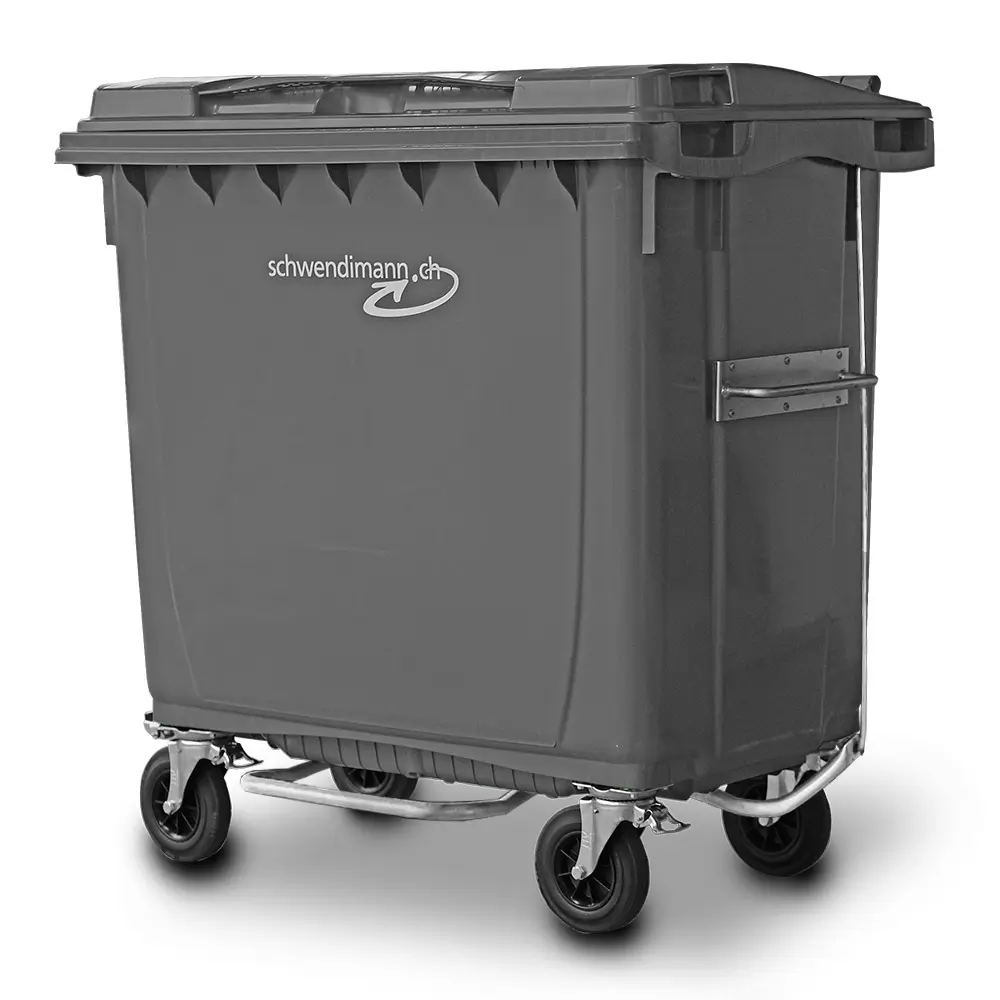 Reicht ein herkömmlicher 2-Rad-Container nicht, muss ein Grosser her. Wir haben 4-Rad-Kunststoffcontainer in den Grössen 660 Liter und 800 Liter. Diese Container sind wahre Bestseller bei Liegenschaftsverwaltungen, Überbauungen und Siedlungen. Die Grosscontainer gibt es auch in der Ausführung mit bequemem Deckelöffner mit Fusspedal. So können Sie mit vollen Händen den Containerdeckel einfach per Fuss öffnen. Zudem bieten wir auch ein automatisches Kippschloss an. Dieses öffnet den Container von alleine, sobald der Container bei der Entleerung am Kehrichtwagen einen gewissen Neigungswinkel erreicht hat. So müssen Sie vor der Kehrichtabfuhr den Container nicht extra aufschliessen kommen.