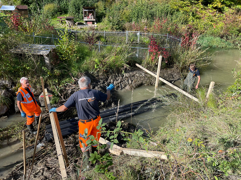 Mit unserer Biber-Drainage sorgen wir dafür, dass Wasserläufe im Gleichgewicht bleiben – ganz ohne den Damm zu zerstören.