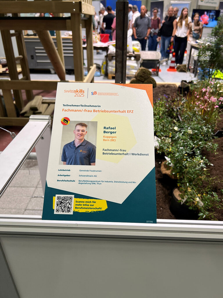 Wir sind stolz, Rafael Berger von Herzen zu seinem hervorragenden 2. Platz im Beruf Fachmann/Fachfrau Betriebsunterhalt EFZ zu gratulieren!